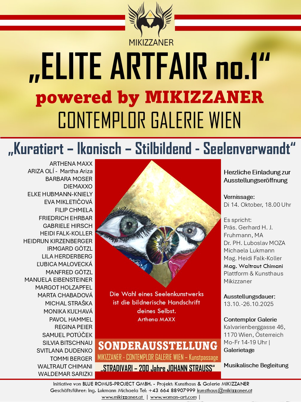 Mikkizaner.01 By Konstantin Chatziathanassiou Posted 7. Oktober 2025 In 0 Recent Posts28.10.-10.11.2025 – Stadt, Land, Fluss…13.-26.10.2025 – Elite Artfair no.113.-26.10.2025 – Sonderausstellung „Strarivari – 200 Jahre Johann Strauss“30.-10.10.2025 – Animalisch bis Abstrakt