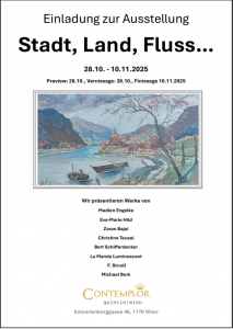 28.10.-10.11.2520 – Stadt, Land, Fluss… By Konstantin Chatziathanassiou Posted 15. Oktober 2025 In Aktuelles, Allgemein, Ausstellungen 0 Recent Posts28.10.-10.11.2520 – Stadt, Land, Fluss…13.-26.10.2520 – Elite Artfair no.113.-26.10.2520 – Sonderausstellung „Strarivari – 200 Jahre Johann Strauss“30.-10.10.2025 – Animalisch bis Abstrakt